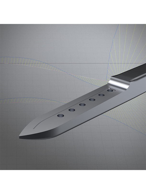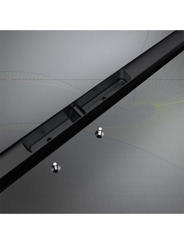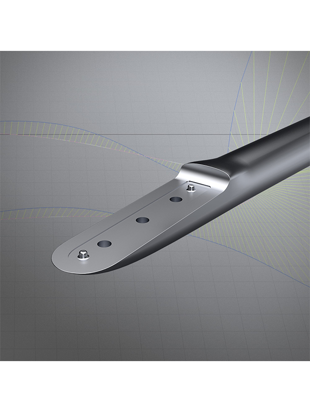 Backwing connection: The flat surface with a centre recess and multiple m6 inserts guarantees precise backwing trim options with a stiff and reliable connection.